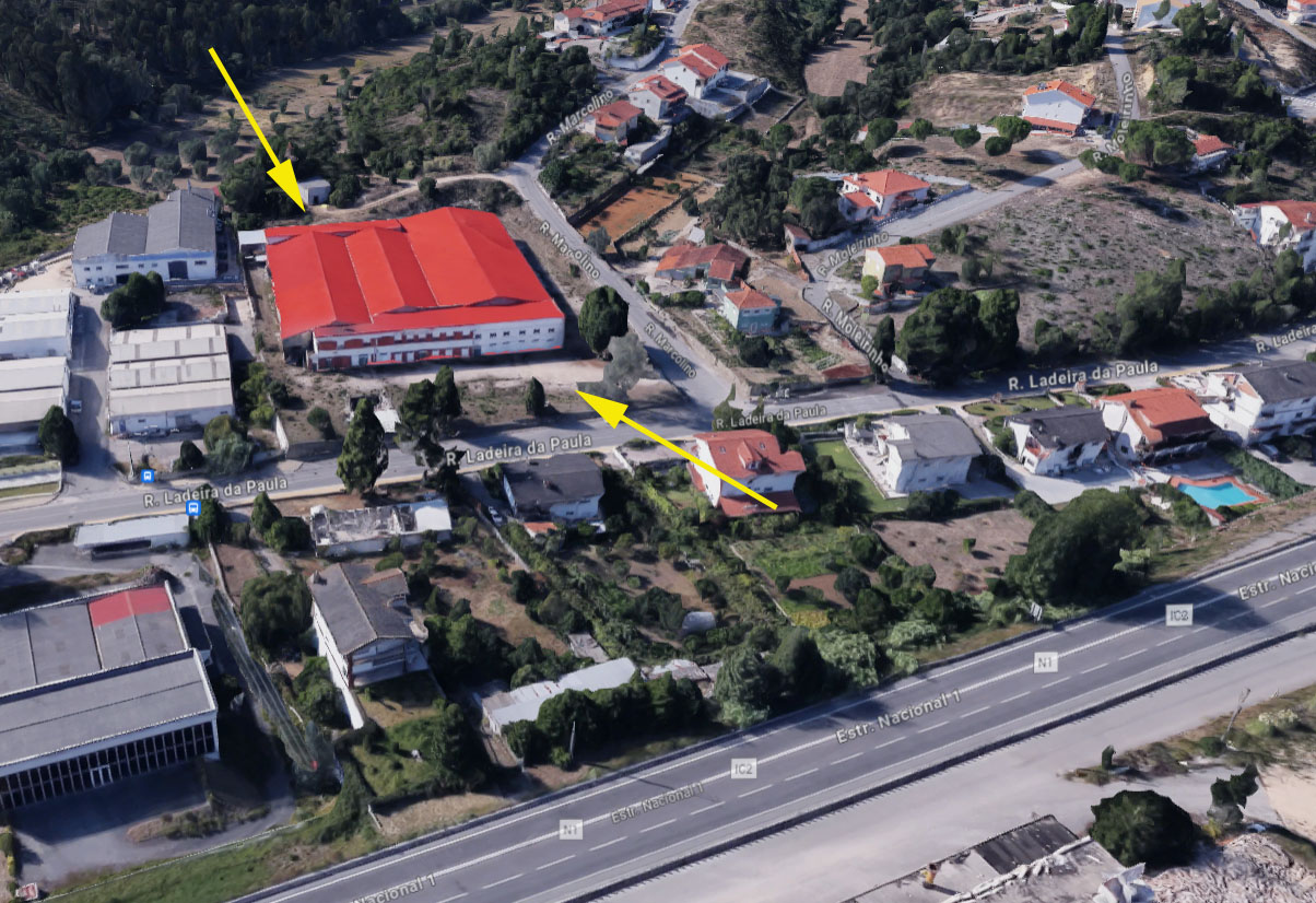 Antigas Instalações Industriais compostas por edifício com R/C, 1º andar e terreno envolvente.